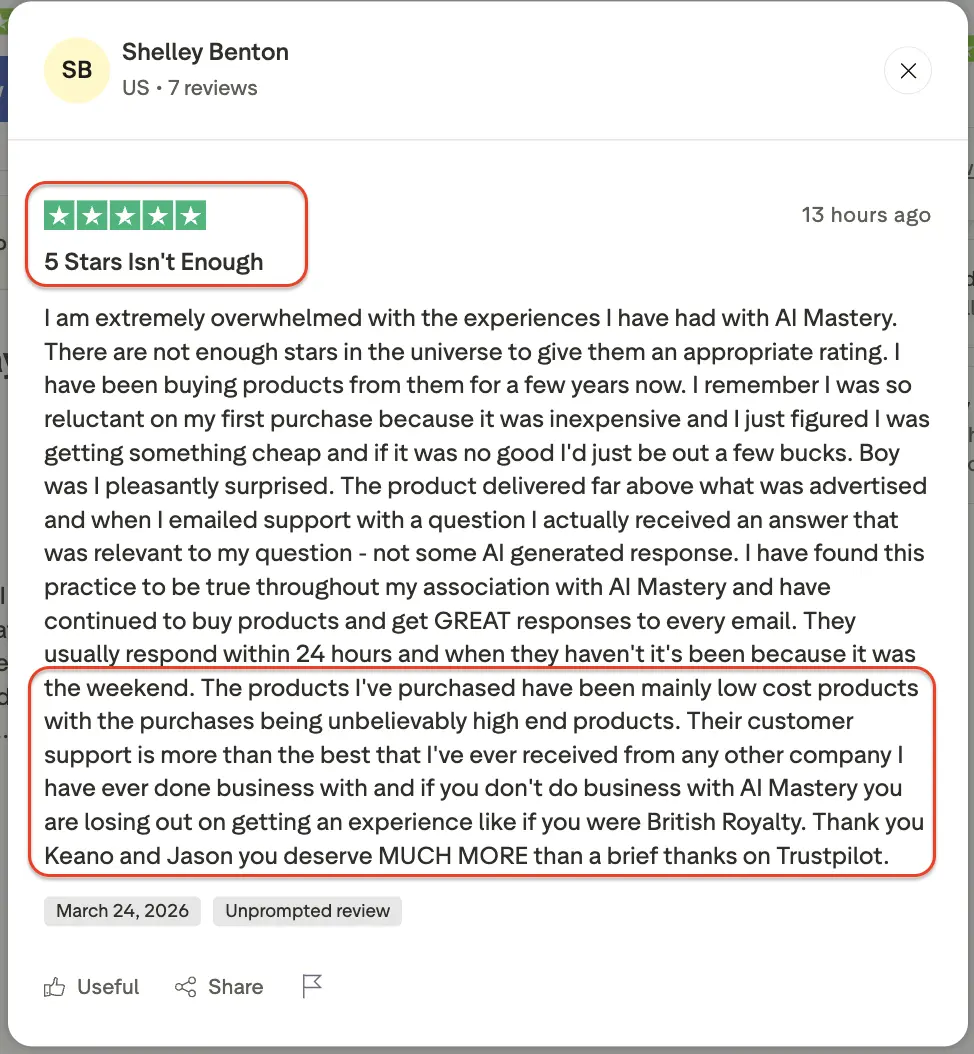Absolutely. 20,000+ entrepreneurs have already implemented this system to save thousands of hours, launch new offers, and scale their income. Scroll up and you’ll see real student results and reviews.